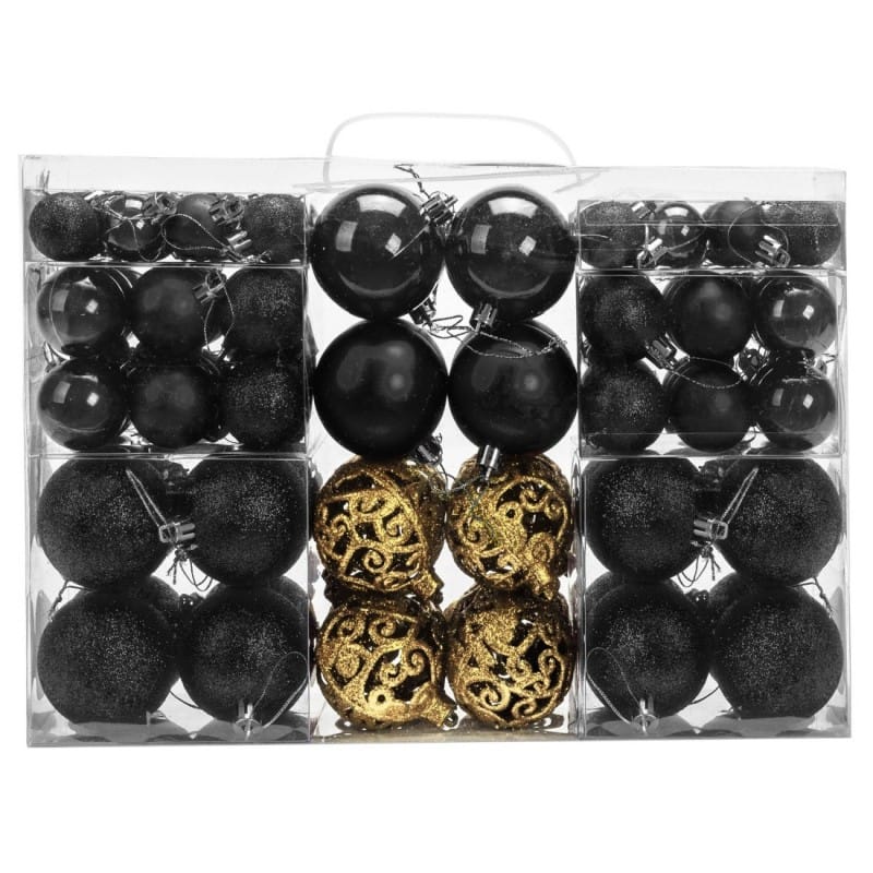 Komplet bombek bożonarodzeniowych 100szt. w opakowaniu czarne złote BSN65