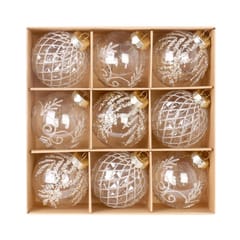 Komplet 9 sztuk bombek na choinkęPoczuj świąteczny klimat! Dodaj swojemu wnętrzu odrobinę zimowej magii.Bombki nadają się jako ozdoba świąteczna do powieszenia na oknie, choince lub jako prezent, a nawet do dekoracji stroików! Specyfikacja: Zestaw 9 sztuk Średnica bombki: 8 cm Kolor: BiałyMateriał: tworzywo sztuczne Wymiary opakowania:24,5 x 24,5 x 8 cm Waga całego zestawu: