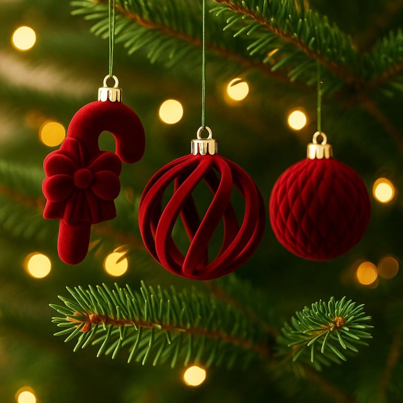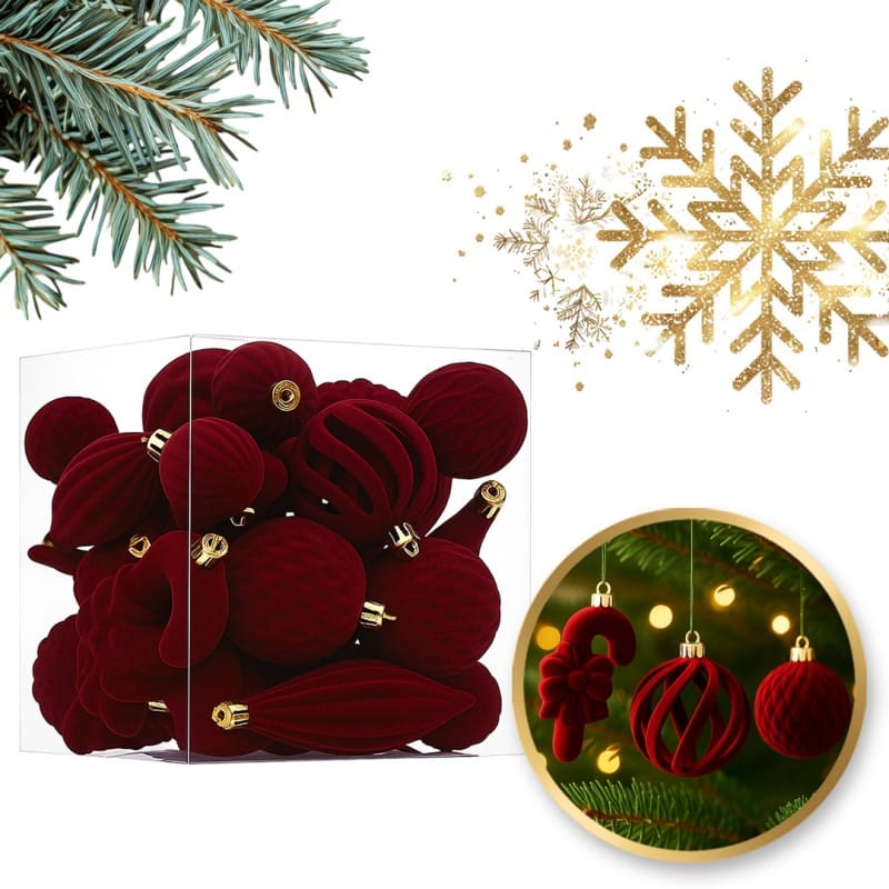 Komplet bombek na choinkę w opakowaniu, bombki welurowe 28szt. bordowe BSN76