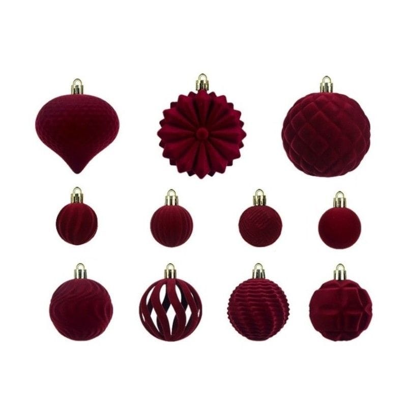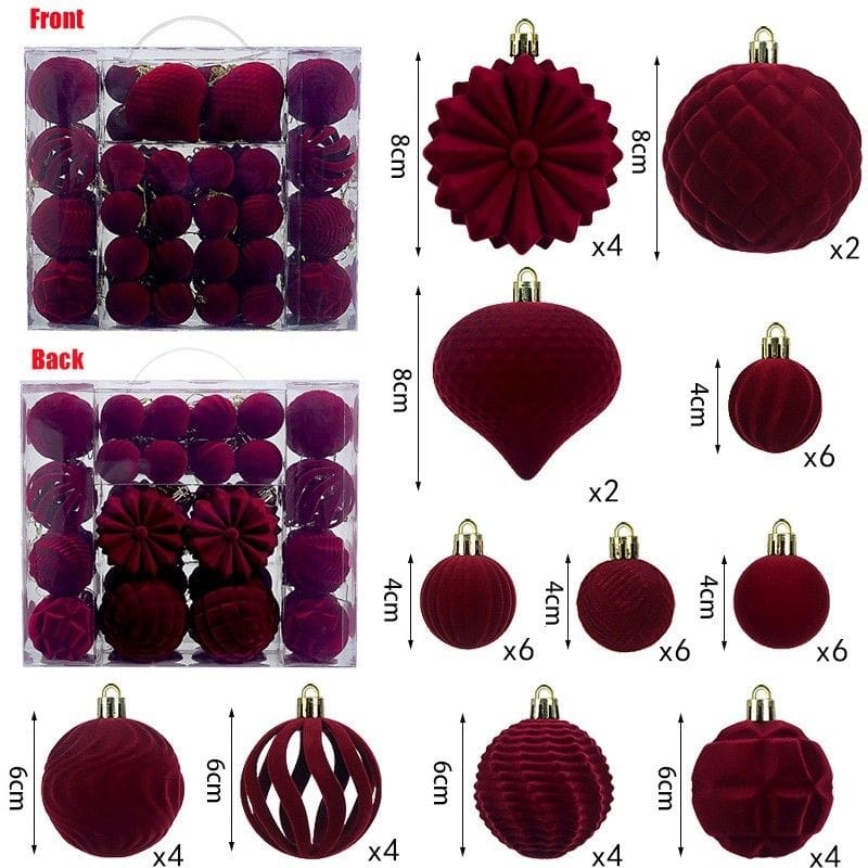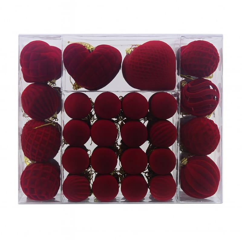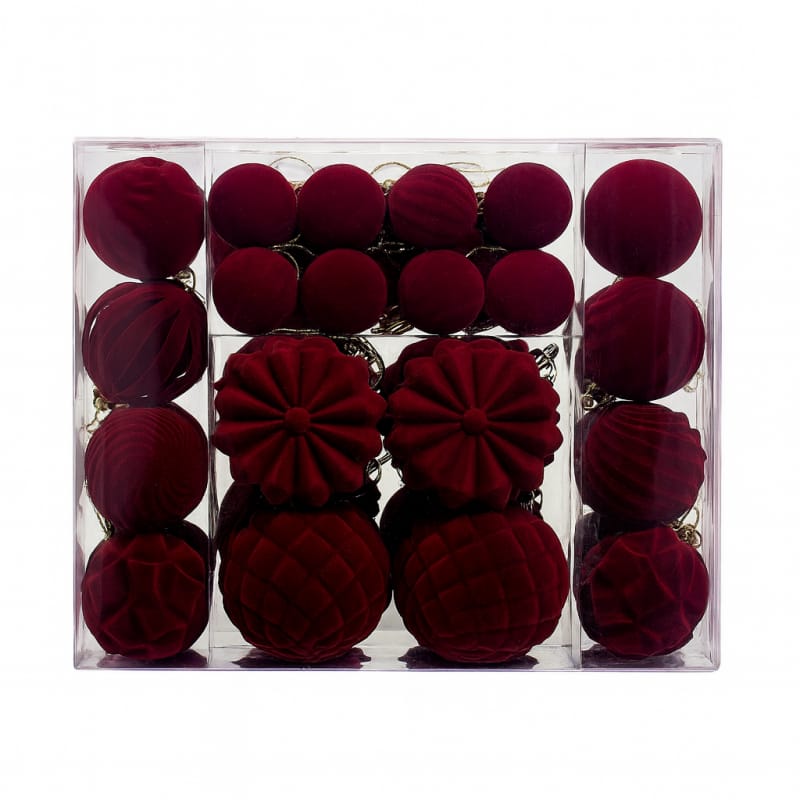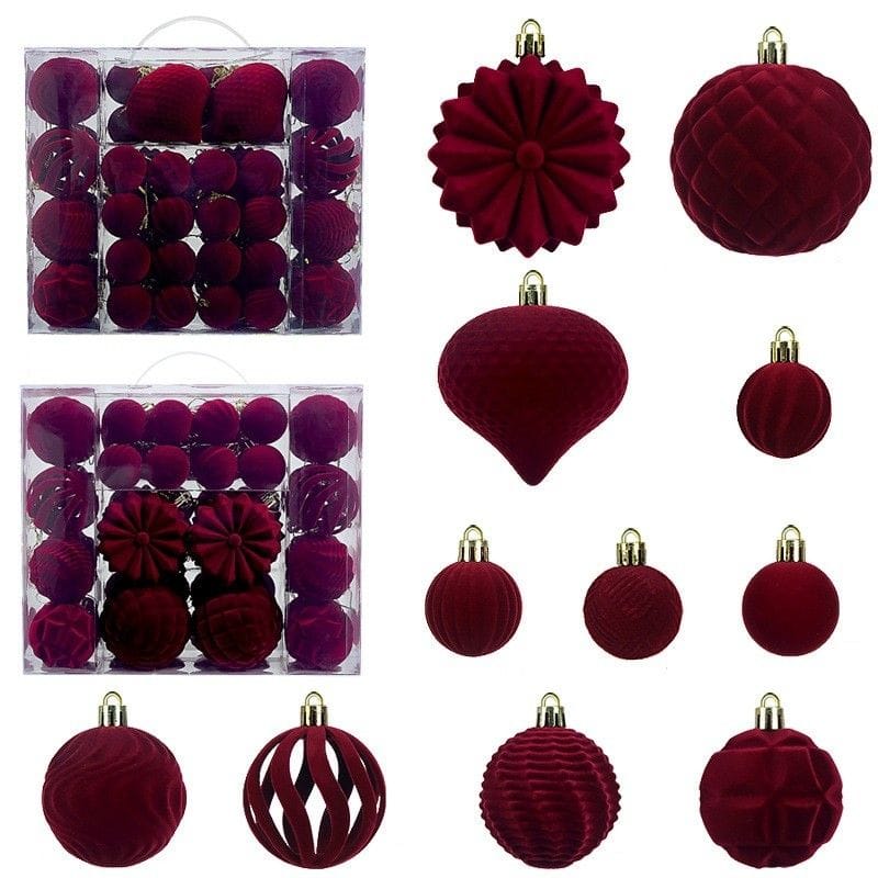 Komplet bombek na choinkę w opakowaniu, bombki welurowe 48szt. bordowe BSN72