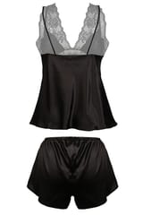 SATYNOWY DOTYK. KOMPLET SKŁADA SIĘ Z KOSZULKI ORAZ SPODENEK. KOSZULKA WYKONANA Z ZWIEWNEJ SATYNY NATOMIAST GÓRA WYKOŃCZONA WZORZYSTĄ KORONKĄ, MISECZKI PODSZYTE SATYNĄ KRYJĄC NASZE ATUTY. RAMIĄCZKA SZEROKIE Z REGULACJĄ. DO KOMPLETU SATYNOWE SPODENKI WYKOŃCZONE NA CIENKIEJ GUMCE. DOSTĘPNA WERSJA KOLORYSTYCZNA: BIAŁA (KORONKA BIAŁA), CZARNY (KORONKA CZARNA).