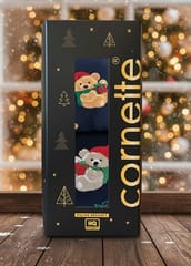 Komplet męski składający się z szortów i skarpet wykonanych z wysokiej jakości bawełny, ozdobionych świątecznym nadrukiem. Pakowane w ozdobne pudełko, idealne na prezent.Skład: szorty 95% bawełna, 5% elastan, skarpety 74% bawełna, 23% poliamid, 3% elastan