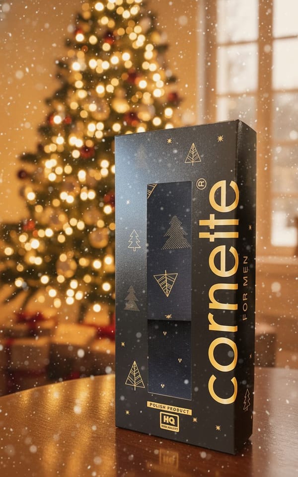 Komplet męski składający się z szortów i skarpet wykonanych z wysokiej jakości bawełny, ozdobionych świątecznym nadrukiem. Pakowane w ozdobne pudełko, idealne na prezent.Skład: szorty 95% bawełna, 5% elastan, skarpety 74% bawełna, 23% poliamid, 3% elastan