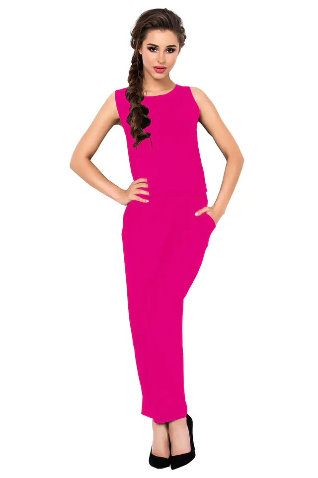 STYLOWY DAMSKI KOMBINEZON Z DŁUGIMI SPODNIAMI, WYKONANY Z DELIKATNEJ W DOTYKU WISKOZOWEJ DZIANINY. W PASIE ODCIĘTY GUMKĄ,KTÓRA POZWALA NA ODPOWEDNIE DOPASOWANIE PO BOKACH DWIE KIESZONKI. GÓRA KOMBINEZONU NA SZERSZYCH RAMIĄCZKACH, ZAPINANY Z TYŁU GUZIKIEM.