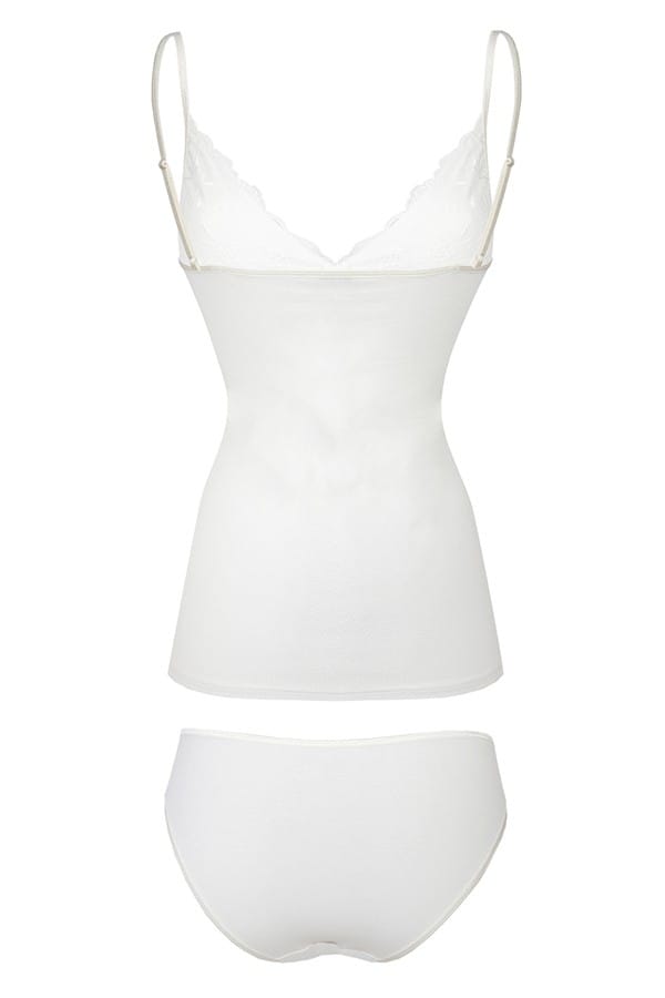 WYGODNY KOMPLECIK WYKONANY Z DELIKATNEJ DLA SKÓRY WISKOZY. KOSZULKA Z DELIKATNEJ WISKOZOWEJ TKANINY Z UROCZĄ KORONKĄ NA BIUŚCIE. FIGI DO KOMPLETU Z DELIKATNĄ KORONKĄ NA PRZODZIE, WYGODNE W NOSZENIU.