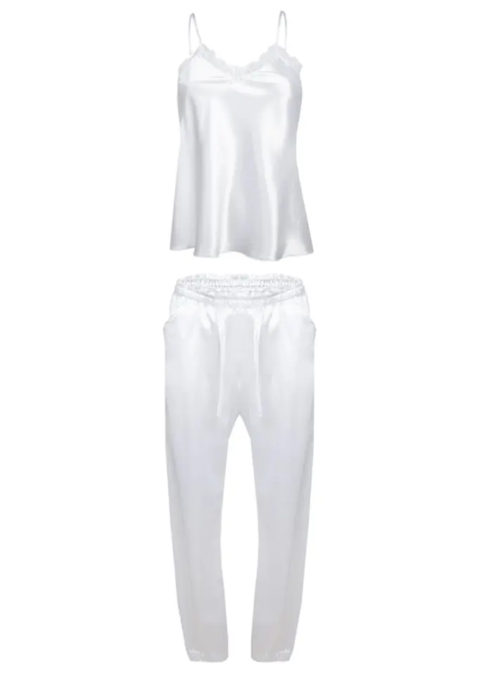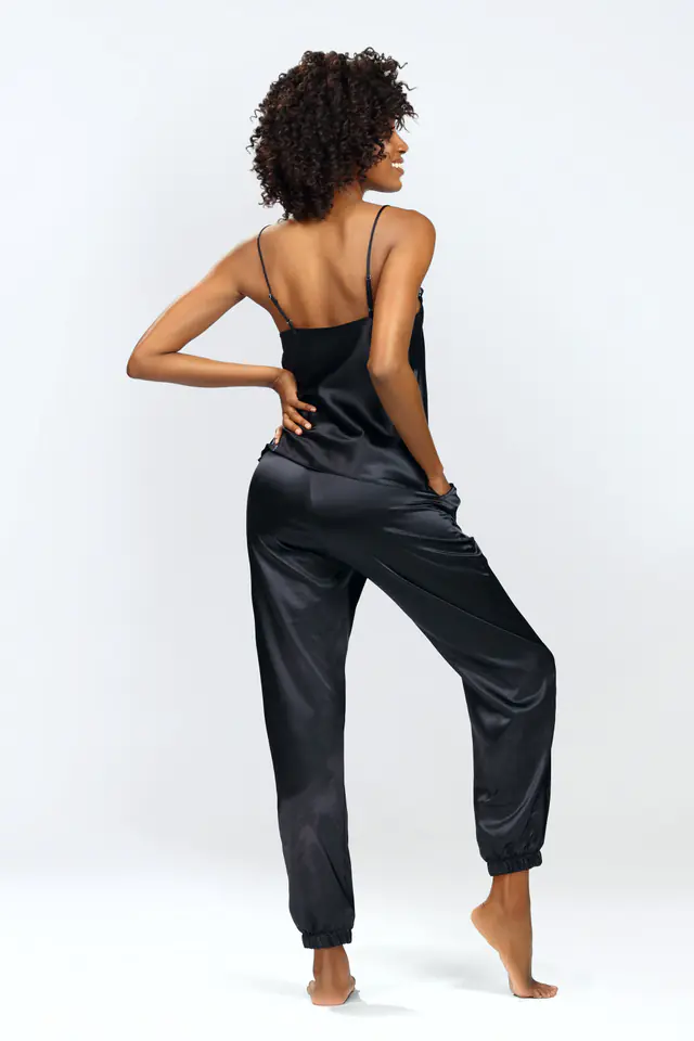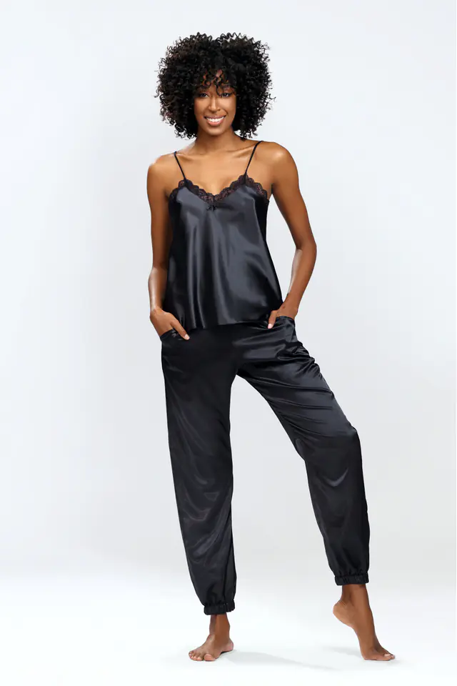Jeśli zwracasz uwagę na to co nosisz po domu, a także cenisz sobie jakość i wygodę komplet Day będzie dla Ciebie. Wygodny komplet wykonany jest z przyjemnej w dotyku satyny. Długie satynowe spodnie ze ściągaczem w pasie i nogawkach idealnie dopasują się do sylwetki. Góra kompletu to satynowa koszulka wykończona koronką. Zarówno dół, jak i górę kompletu można zestawić z innymi ubraniami. Koszulka z kompletu może stanowić bazę codziennej stylizacji. Sprawdzi się na przykład do stylizacji z jeansami i marynarką czy kurtką skórzaną. Spodnie natomiast można zestawić z koszulką lub bluzką na długi rękaw, jeśli będzie chłodniej.