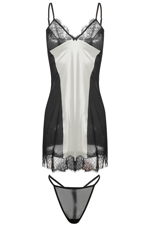 SATYNOWA ZWIEWNA HALECZKA ZE STRINGAMI. DÓŁ HALKI ORAZ MISECZKI WYKOŃCZONE SĄ PRZYJEMNĄ W DOTYKU KORONKĄ, BOKI KOSZULKI WYKONANE Z PRZEJRZYSTEGO TIULU. RAMIĄCZKA CIENKIE, REGULOWANE. DOSTĘPNE WSZYSTKIE WERSJE KOLORYSTYCZNE Z CZARNĄ KORONKĄ I CZARNĄ SIATKĄ. WYJĄTEK STANOWI KOLOR BIAŁY KORONKA BIAŁA.