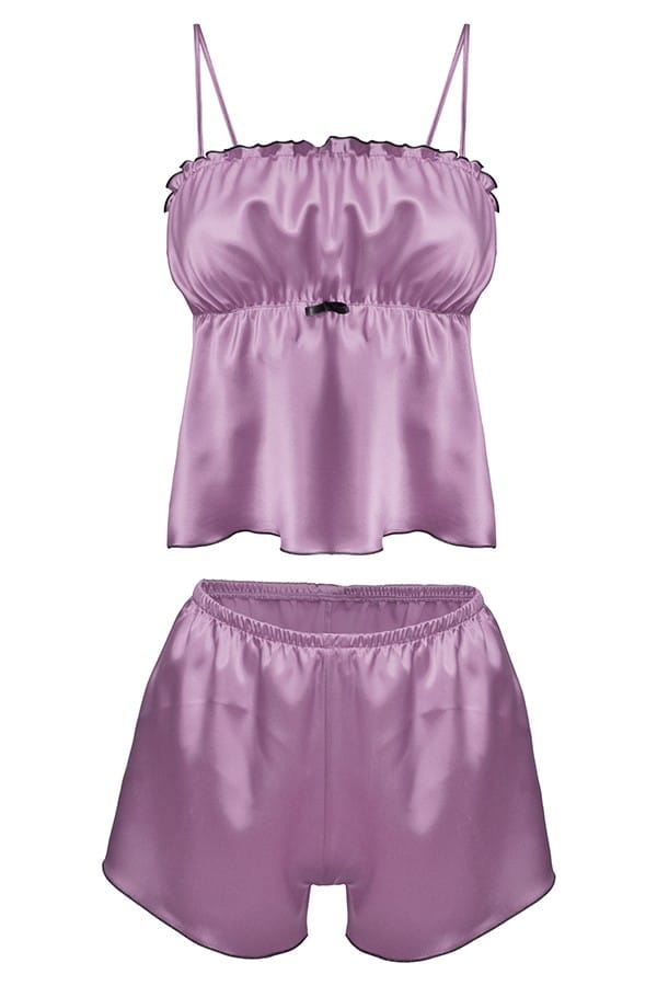 KOMPLECIK SKŁADA SIĘ Z KOSZULKI I KRÓTKICH SPODENEK DO GÓRY, Z PRZODU KOSZULKI I POD BIUSTEM PRZYSZYTA JEST DELIKATNA GUMKA. GÓRA I DÓŁ HALKI OBSZYTE SĄ MEREŻKĄ. RAMIĄCZKA CIENKIE, REGULOWANE. SPODENKI NA GUMCE OBSZYTE MEREŻKĄ.