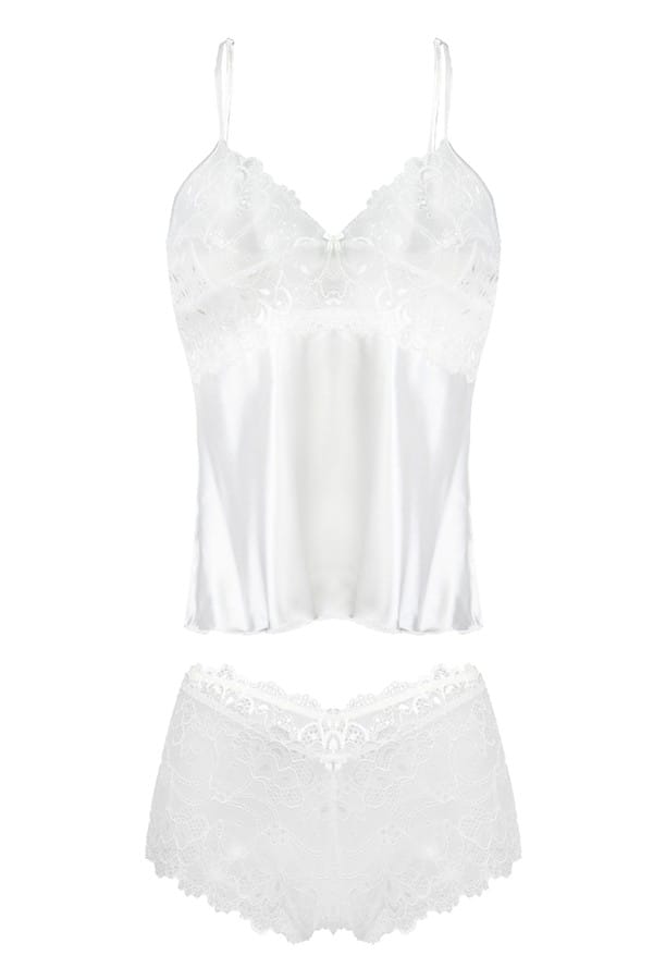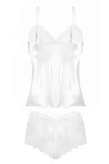 SEKSOWNY KOMPLET KTÓRY SKŁADA SIĘ Z DWÓCH CZĘŚCI: KOSZULKI ORAZ BOKSEREK. GÓRA KOSZULKI USZYTA Z ELASTYCZNEJ KORONKI, DÓŁ NATOMIAST ZOSTAŁ WYKONANY Z DELIKATNEJ SATYNY. RAMIĄCZKA CIENKIE REGULOWANE. BOKSERKI NA CIENKIEJ GUMCE USZYTE Z ELASTYCZNEJ KORONKI. WERSJA KOLORYSTYCZNA: BIAŁA, CZARNY, ECRU.