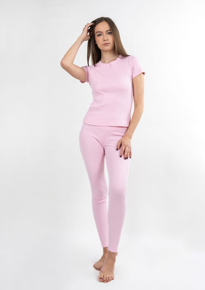 Komplet Halima JASNY RÓŻ BAWEŁNA PRĄŻKI kolor jasny róż, rozmiar XL