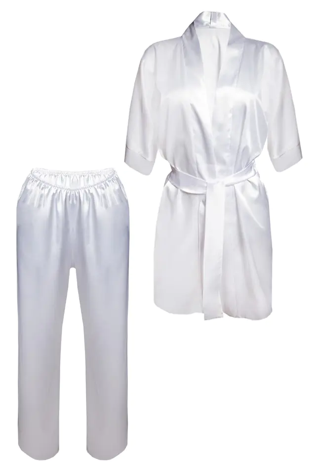 KOMPLET SKŁADA SIĘ Z PODOMKI 90 ORAZ DŁUGICH SPODNI. INNOWACYJNY SATYNOWY ZESTAW W ODCIENIU BIELI.