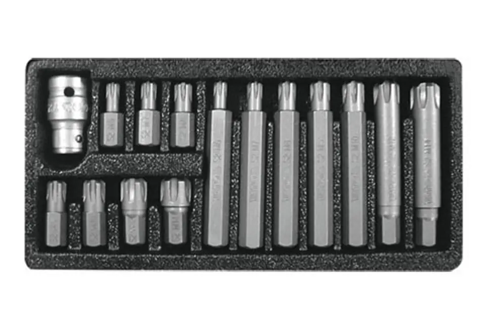 Profesjonalny zestaw bitów, s?u??cy do odkr?cania ?rub specjalnych typu: ribe. Ró?norodno?? bitów zapewnia mo?liwo?? wykonania wielu prac w specjalistycznych serwisach mechanicznych i samochodowych. Ko?cówki posiadaj? d?ugo?? 30 mm, mocowane w uchwycie sze?ciok?tnym 10 mm, dostosowanym do wspó?pracy z grzechotk? 1/2.Zestaw wykonany z najwy?szej jako?ci stali stopowej narz?dziowej S2, która charakteryzuje si?: wysok? twardo?ci? HRC 58-62 jednolit?, drobnoziarnist? struktur? materia?u odporno?ci? na skr?canie wysokim momentem dokr?cania - 21,8 Nm doskona?ym zahartowaniem.Top of Form 1