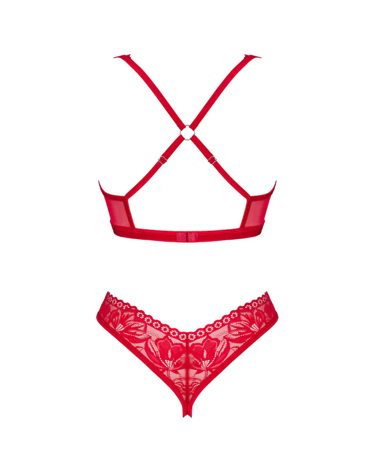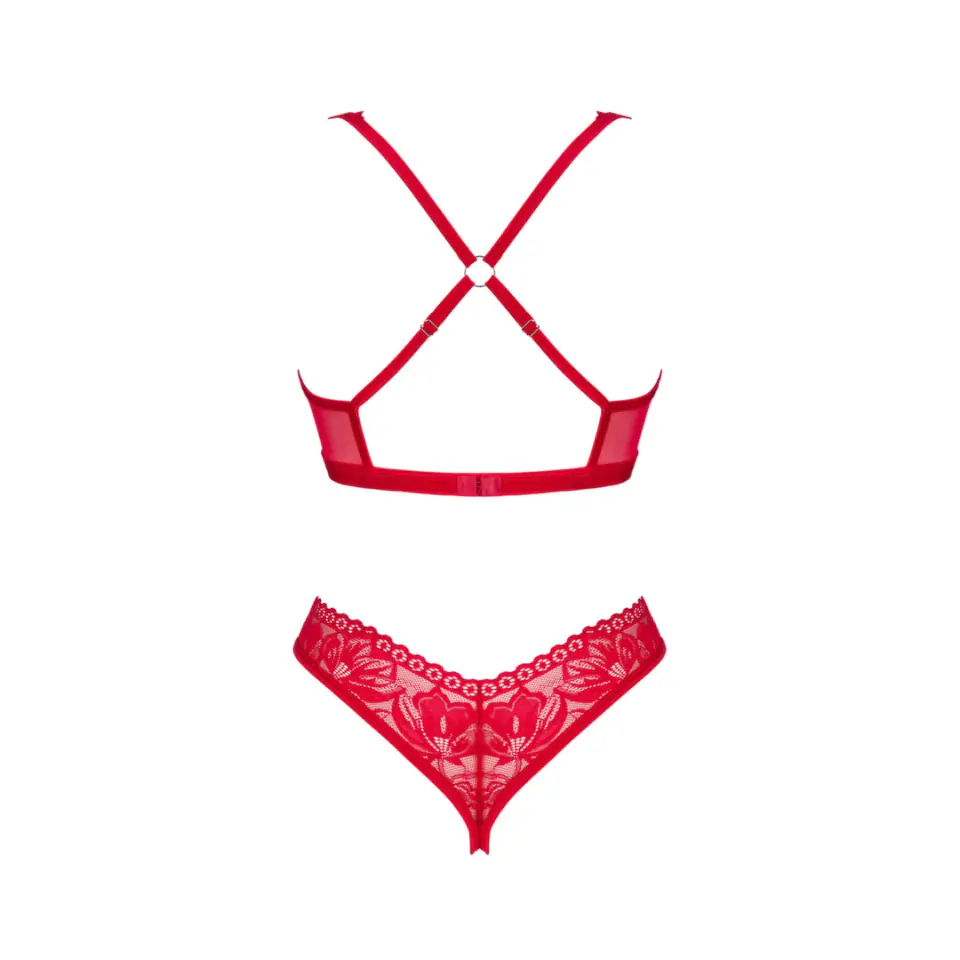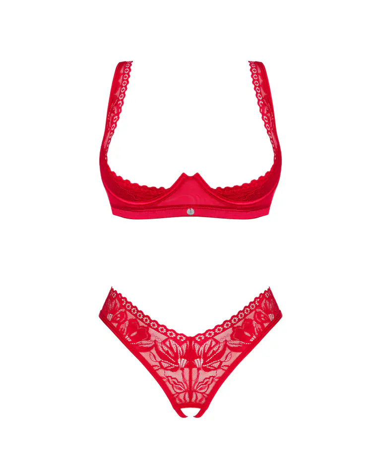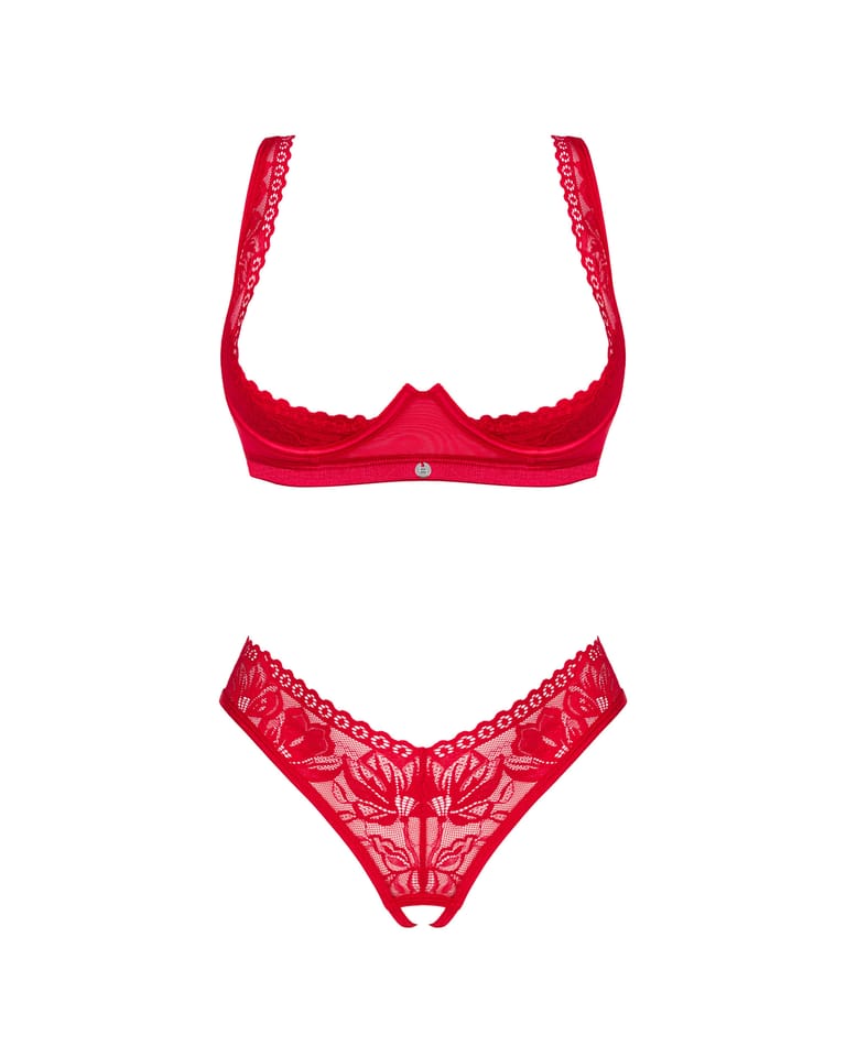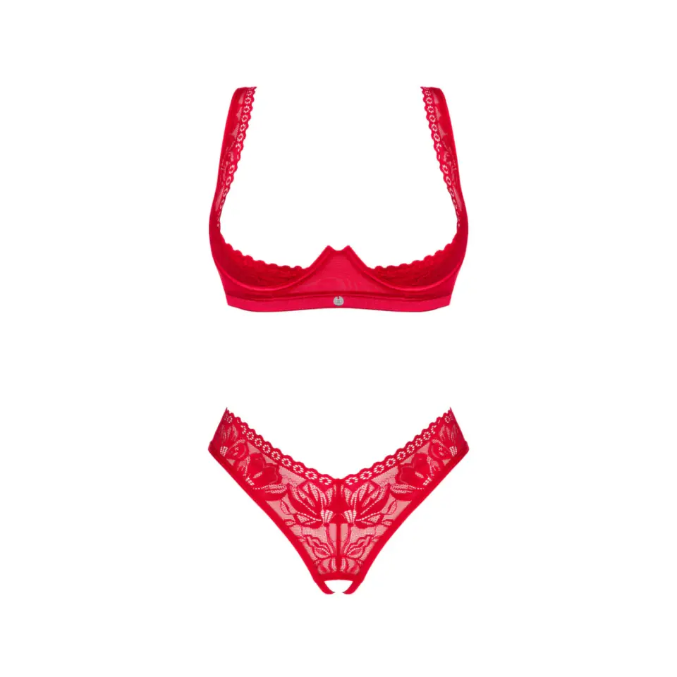 Komplet Lacelove 2-częściowy otwarty Czerwony Rozmiar M/L