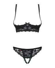 - zestaw zawiera: biustonosz bez miseczek i stringi z otwartym krokiem