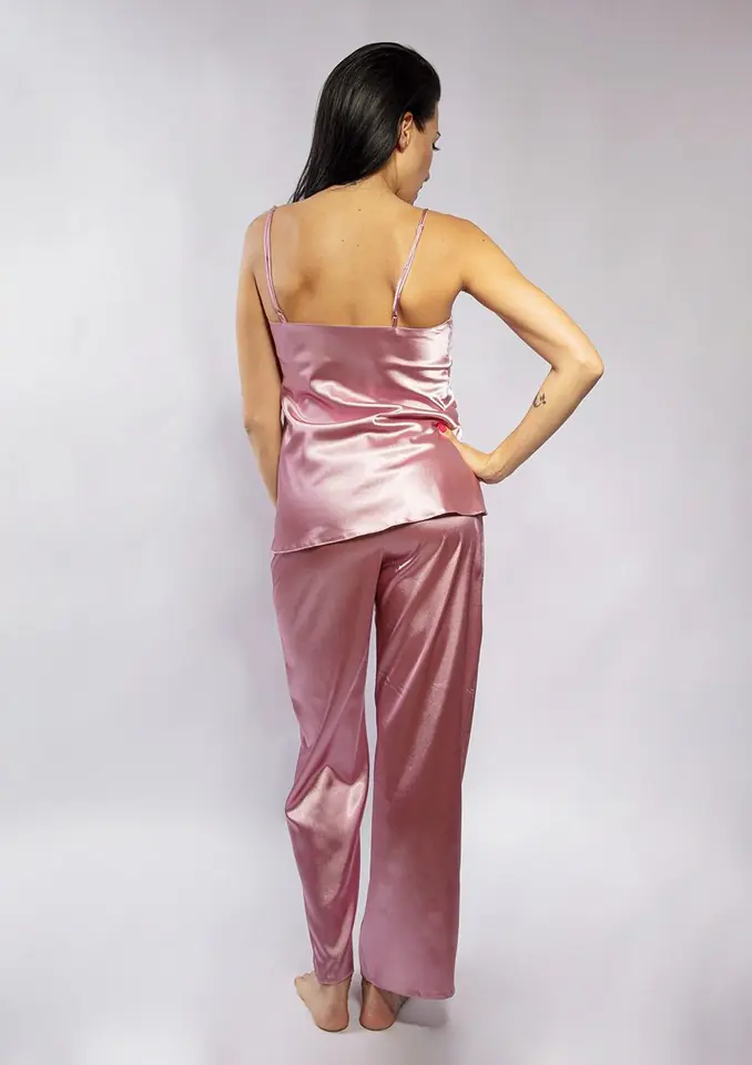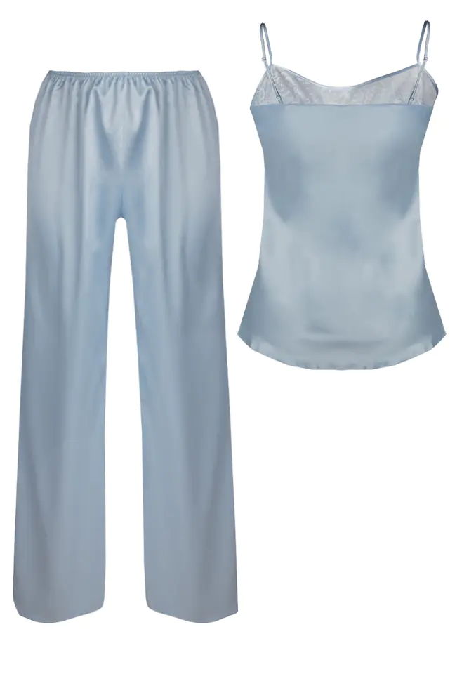 Kto kocha pastele? Poznaj najnowszy komplecik Melanie od DKaren, w którym króluje pastelowy błękit. To urocze połączenie słodkiego koloru z białą koronką i wdziękiem szlachetnej, miękkiej satyny. Wygoda i świetny wygląd w jednym. Jeśli masz ochotę na bluzeczkę na ramiączkach w delikatnej, kobiecej wersji a do tego komfortowe spodnie - śmiało rezerwuj go dla siebie. Skład: 100% poliester.