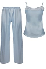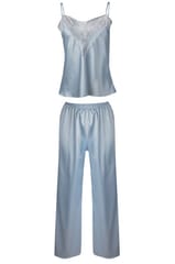 Kto kocha pastele? Poznaj najnowszy komplecik Melanie od DKaren, w którym króluje pastelowy błękit. To urocze połączenie słodkiego koloru z białą koronką i wdziękiem szlachetnej, miękkiej satyny. Wygoda i świetny wygląd w jednym. Jeśli masz ochotę na bluzeczkę na ramiączkach w delikatnej, kobiecej wersji a do tego komfortowe spodnie - śmiało rezerwuj go dla siebie. Skład: 100% poliester.