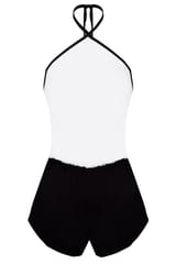 ZMYSŁOWY WISKOZOWY KOMBINEZON Z KRÓTKIMI SPODENKAMI, WYKONANY Z MIĘKKIEJ W DOTYKU WISKOZOWEJ DZIANINY. W PASIE ODCIĘTY GUMKĄ,KTÓRA POZWALA NA ODPOWIEDNIE DOPASOWANIE. GÓRA WYKOŃCZONA CZARNĄ WISKOZOWĄ LAMÓWKĄ, WIĄZANY NA SZYI. DOSTĘPNA WERSJA KOLORYSTYCZNA ZAWSZE Z CZARNYM DOŁEM
