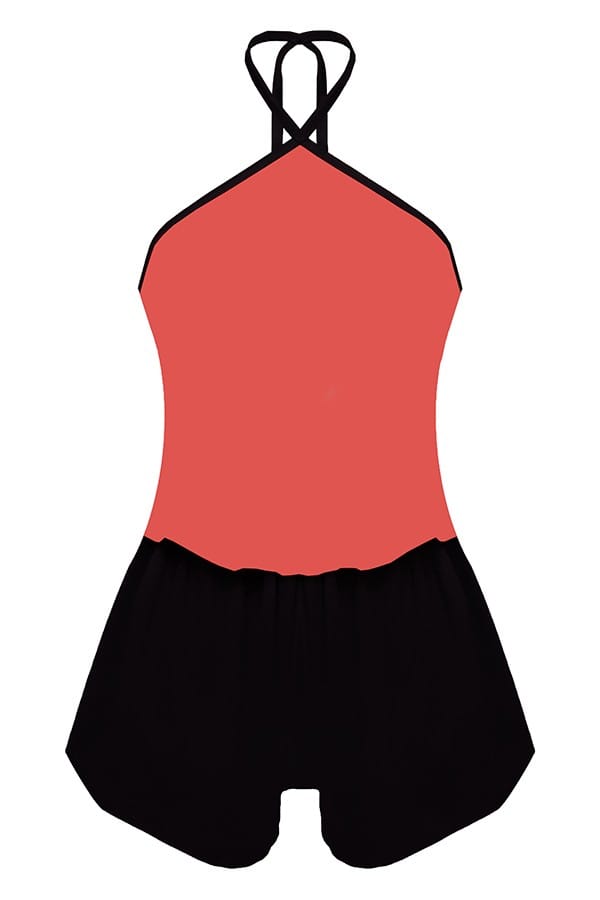 ZMYSŁOWY WISKOZOWY KOMBINEZON Z KRÓTKIMI SPODENKAMI, WYKONANY Z MIĘKKIEJ W DOTYKU WISKOZOWEJ DZIANINY. W PASIE ODCIĘTY GUMKĄ,KTÓRA POZWALA NA ODPOWIEDNIE DOPASOWANIE. GÓRA WYKOŃCZONA CZARNĄ WISKOZOWĄ LAMÓWKĄ, WIĄZANY NA SZYI. DOSTĘPNA WERSJA KOLORYSTYCZNA ZAWSZE Z CZARNYM DOŁEM