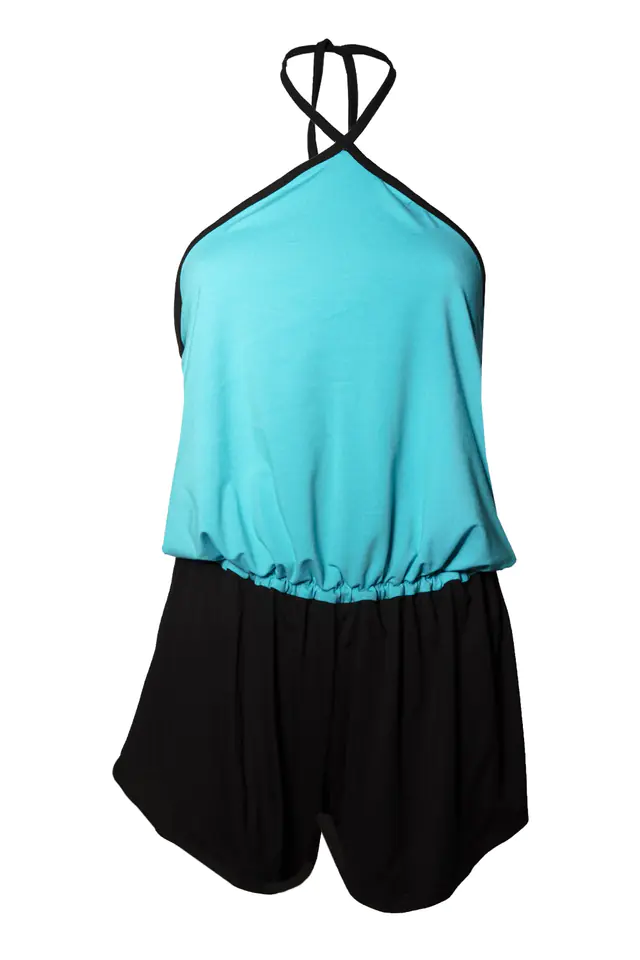 ZMYSŁOWY WISKOZOWY KOMBINEZON Z KRÓTKIMI SPODENKAMI, WYKONANY Z MIĘKKIEJ W DOTYKU WISKOZOWEJ DZIANINY. W PASIE ODCIĘTY GUMKĄ,KTÓRA POZWALA NA ODPOWIEDNIE DOPASOWANIE. GÓRA WYKOŃCZONA CZARNĄ WISKOZOWĄ LAMÓWKĄ, WIĄZANY NA SZYI. DOSTĘPNA WERSJA KOLORYSTYCZNA ZAWSZE Z CZARNYM DOŁEM