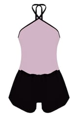 ZMYSŁOWY WISKOZOWY KOMBINEZON Z KRÓTKIMI SPODENKAMI, WYKONANY Z MIĘKKIEJ W DOTYKU WISKOZOWEJ DZIANINY. W PASIE ODCIĘTY GUMKĄ,KTÓRA POZWALA NA ODPOWIEDNIE DOPASOWANIE. GÓRA WYKOŃCZONA CZARNĄ WISKOZOWĄ LAMÓWKĄ, WIĄZANY NA SZYI. DOSTĘPNA WERSJA KOLORYSTYCZNA ZAWSZE Z CZARNYM DOŁEM