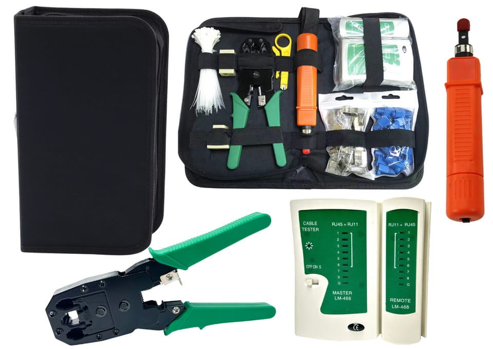 ? Komplet Narzędzi Sieciowych 19w1 ? Tester, Zaciskarka Kabli