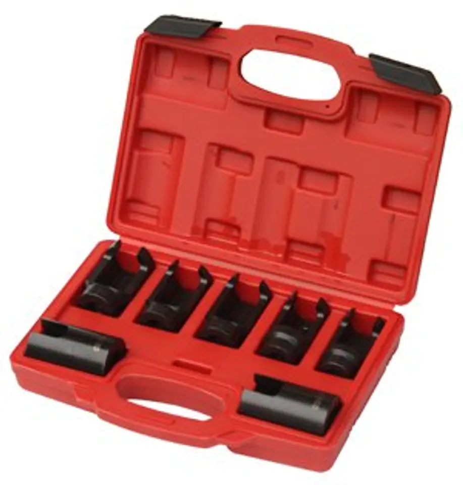 W komplecie nasadki 1/2" 6-kątne w rozmiarach 25,27,28,29,30 mm oraz dysze Siemens i Bosch. Zastosowanie w większości wtryskiwaczy.