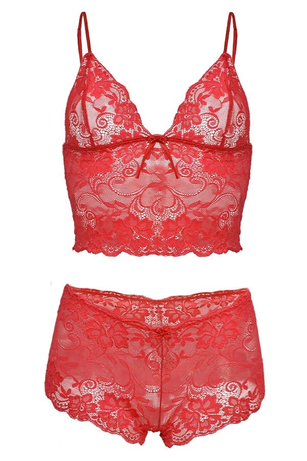KOMPLET NINA KORONKA CZERWONY kolor czerwony, rozmiar L