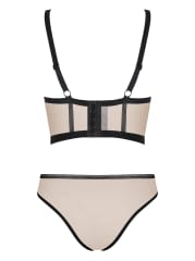 - Wow! Ten komplet wart jest grzechu! Masz ochotę podkręcić swoją stylizację kładąc nacisk na niespodziankę wieczorem? - śmiało sięgnij po ten najnowszy komlecik Nudelia od Obsessive. Komplet wykonano z prześwitującego materiału z efektem "second skin", a całość podkreślono wyrazistymi lamówkami, które zmysłowo pną się po sylwetce kusząc spojrzenie. Góra w formie półgorsetu/topu, na cienkich, regulowanych ramiączkach, konstrukcja soft. Figi gładkie i delikatne. Skład: 90% poliamid, 10% elastan.