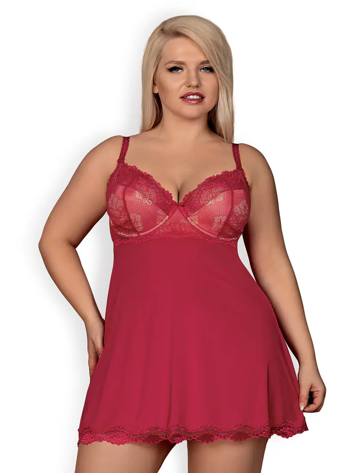 KOMPLET OBSESSIVE ROSALYNE BABYDOLL I STRINGI kolor czerwony, rozmiar S/M