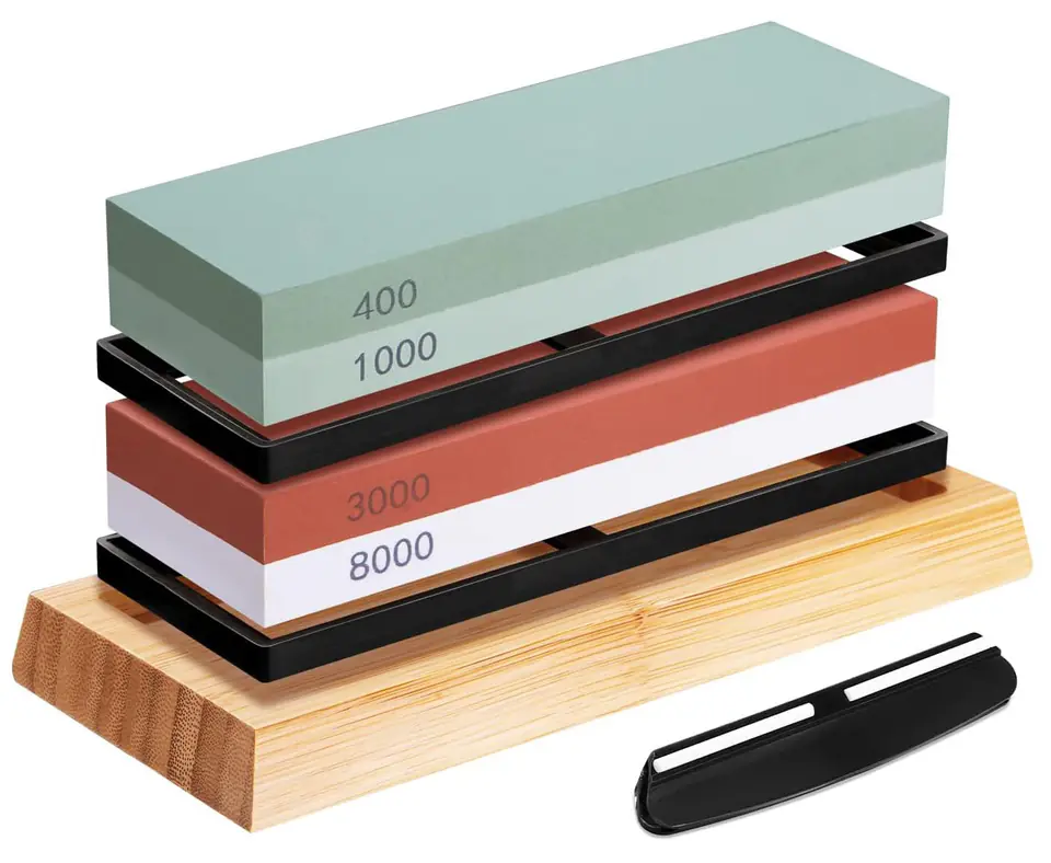 Profesjonalny zestaw osełek do noży SEKAN⭐Doskonałe kamienie wodne⭐Aż 4 gradacje⭐Najwyższa jakość⭐ ✅Profesjonalny zestaw osełek SEKAN - perfekcyjnie ostre noże!Kamienie wodne Sekan to świetne ostrzałki do każdego typu ostrza. Bezproblemowo naostrzysz nim wszelkiego rodzaju: noże, tasaki, maczety, brzytwy, scyzoryki czy nożyczki. Niezależnie od poziomu doświadczenia, ostrzenie przebiega szybko i przede wszystkim skutecznie. Komplet ostrzałek Sekan firmy Gockowiak cechuje się wysoką jakością kamieni, wieloma gradacjami i estetycznym wykonaniem. Kamienie wykonane są z najwyższej jakości korundu i posiadają gradację w przedziale 400/1000 oraz 3000/8000. Kamień wodny 400/1000 służy do naprawy ostrza i ostrzenia wstępnego co wykonamy stroną z wartością gradacji 400. Strona z większą gradacją służy już do wygładzania krawędzi tnącej i nadaje się do codziennego ostrzenia noży. Po wstępnym naostrzeniu można z powodzeniem przejść do osełki 3000/8000 gdzie ostrze można precyzyjnie wykończyć i wypolerować wg własnego uznania. Oprócz kamieni zestaw posiada estetyczną bambusową podstawkę, , prowadnicę do utrzymywania kąta. Każda z osełek posiada gumowe podkładki antypoślizgowe. Sekan to profesjonalny zestaw osełek. Dzięki niemu wygładzisz i naprawisz wyszczerbione ostrza, naostrzysz je i perfekcyjnie wykończysz, nadając im połysku. Zalety:✅Najwyższa jakość korundu✅Aż 4 rodzaje gradacji✅Ostrzałki z dwustronną gradacją✅Uniwersalne i praktyczne - do każdego rodzaju ostrza✅Stały i optymalny kąt dzięki prowadnicy✅Łatwa i bezproblemowa obsługa✅Antypoślizgowa podstawa✅Estetyczna bambusowa ostrzałka✅Wszechstronne zastosowanie✅Łatwe do utrzymania w czystości✅Ciekawy pomysł na prezent Specyfikacja:Materiał kamieni: korundIlość kamieni w zestawie: 2Wymiar kamieni: 3 x 18,2 x 6 cm (wys. x szer. x głęb.)Ilość gradacji: 4 (400,1000,3000,8000)W zestawie: dwa kamienie z korundu, prowadnica do utrzymywania kąta, bambusowa podstawka, gumowe podkładkiPrzeznaczenie: noże, tasaki, maczety, brzytwy, scyzoryki, nożyczkiWaga zestawu: 1,75 kg Z zestawem Sekan naostrzysz każdy rodzaj ostrza Porządnie naostrzony nóż do podstawa każdej kuchniOstry nóż to podstawowe narzędzie w każdej kuchni. By ostrość noża się utrzymywała należy regularnie go ostrzyć i konserwować. Kamienie wodne Sekan pozwolą szybko i skutecznie naostrzyć praktycznie każdy rodzaj ostrza. Jak używać ostrzałek?1. Włóż kamień do wody na 10 - 12 minut.2. Przed rozpoczęciem ostrzenia zalecamy nałożenie rękawic ochronnych.3. Następnie ułóż prowadnicę kątową na nóż. Zalecane jest ostrzyć pod kątem 10-20°.4. Ostrz ruchem posuwistym od siebie, przesuwając całą długość ostrza przez osełkę 4-5 razy, następnie drugą stronę ostrza ruchem do siebie również 4-5 razy.5. Powtarzaj krok nr 4 aż do uzyskania pożądanego efektu, w celu bardziej precyzyjnego ostrzenia zmieniaj gradacje na wyższą, utrzymaj kamień namoczony.6. Po otrzymaniu oczekiwanej ostrości, usuń drobinki materiału z noża. UWAGA | Przedstawione kolory należy traktować poglądowo - mogą odbiegać od rzeczywistych ze względu na różne ustawienia monitorów oraz proces obróbki zdjęć • Rzeczywiste wymiary mogą się nieznacznie różnić od podanych w opisie. Tolerancja błędów może wynosić +/- 2 cm