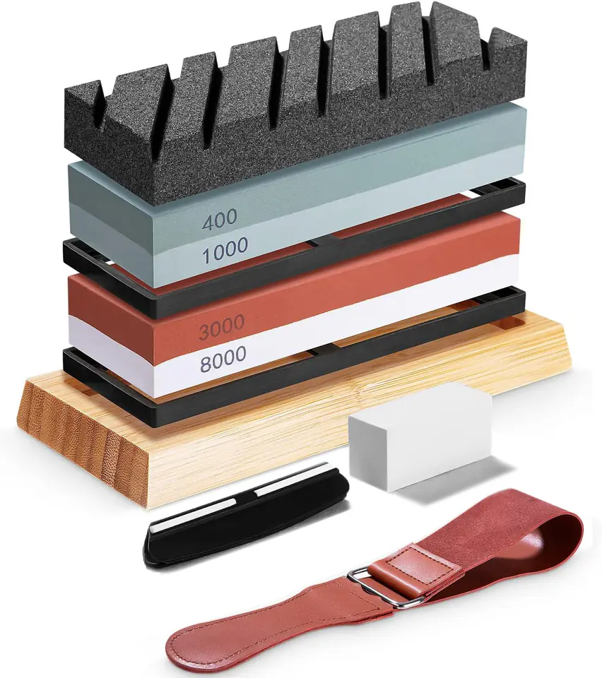 Komplet osełek do noży SERDISDo użytku profesjonalnego i amatorskiego | 4 gradacje Profesjonalny zestaw osełek SERDIS - perfekcyjnie ostre noże!Kamienie wodne Serdis to świetne ostrzałki do każdego typu ostrza. Bezproblemowo naostrzysz nim wszelkiego rodzaju: noże, tasaki, maczety, brzytwy, scyzoryki czy nożyczki. Niezależnie od poziomu doświadczenia, ostrzenie przebiega szybko i przede wszystkim skutecznie. Komplet ostrzałek Serdis firmy Gockowiak cechuje się wysoką jakością kamieni, wieloma gradacjami i estetycznym wykonaniem. Kamienie wykonane są z najwyższej jakości korundu i posiadają gradację w przedziale 400/1000 oraz 3000/8000. Kamień wodny 400/1000 służy do naprawy ostrza i ostrzenia wstępnego co wykonamy stroną z wartością gradacji 400. Strona z większą gradacją służy już do wygładzania krawędzi tnącej i nadaje się do codziennego ostrzenia noży. Po wstępnym naostrzeniu można z powodzeniem przejść do osełki 3000/8000 gdzie ostrze można precyzyjnie wykończyć i wypolerować wg własnego uznania. Oprócz kamieni zestaw posiada estetyczną bambusową podstawkę, skórzany pasek do czyszczenia ostrza, prowadnicę do utrzymywania kąta, kamień naprawczy oraz kamień spłaszczający osełkę . Każda z osełek posiada gumowe podkładki antypoślizgowe. Serdis to profesjonalny zestaw osełek. Dzięki niemu wygładzisz i naprawisz wyszczerbione ostrza, naostrzysz je i perfekcyjnie wykończysz, nadając im połysku. Zalety✅Najwyższa jakość korundu✅Aż 4 rodzaje gradacji✅Ostrzałki z dwustronną gradacją✅Uniwersalne i praktyczne - do każdego rodzaju ostrza✅Bogaty zestaw z dodatkowymi akcesoriami✅Stały i optymalny kąt dzięki prowadnicy✅Łatwa i bezproblemowa obsługa✅Antypoślizgowa podstawa✅Estetyczna bambusowa ostrzałka✅Wszechstronne zastosowanie✅Łatwe do utrzymania w czystości✅Ciekawy pomysł na prezent SpecyfikacjaMateriał kamieni: korundIlość kamieni w zestawie: 2Wymiar kamieni: 3 x 18 x 6 cm (wys. x szer. x głęb.)Ilość gradacji: 4 (400,1000,3000,8000)W zestawie: dwa kamienie z korundu, skórzany pasek, kamień naprawczy, prowadnica do utrzymywania kąta, bambusowa podstawka oraz kamień spłaszczający osełkęPrzeznaczenie: noże, tasaki, maczety, brzytwy, scyzoryki, nożyczkiWaga zestawu: 2,45 kg Instrukcja użytkowania1. Włóż kamień do wody na 10 - 12 minut.2. Przed rozpoczęciem ostrzenia zalecamy nałożenie rękawic ochronnych.3. Następnie ułóż prowadnicę kątową na nóż. Zalecane jest ostrzyć pod kątem 10-20°.4. Ostrz ruchem posuwistym od siebie, przesuwając całą długość ostrza przez osełkę 4-5 razy, następnie drugą stronę ostrza ruchem do siebie również 4-5 razy.5. Powtarzaj krok nr 4 aż do uzyskania pożądanego efektu, w celu bardziej precyzyjnego ostrzenia zmieniaj gradacje na wyższą, utrzymaj kamień namoczony.6. Po otrzymaniu oczekiwanej ostrości ostrza użyj paska aby usunąć drobinki materiału z noża. Informacje dodatkowePrzedstawione kolory należy traktować poglądowo - mogą odbiegać od rzeczywistych ze względu na różne ustawienia monitorów oraz proces obróbki zdjęć. Rzeczywiste wymiary mogą się różnić od podanych wyżej. Tolerancja błędów może wynosić +/- 5%. Marka:GockowiakKod EAN:5902340327524Ilość gradacji:czteryPrzeznaczenie: noże, tasaki, maczety, brzytwy, scyzoryki, nożyczkiWaga zestawu:2,45 kg