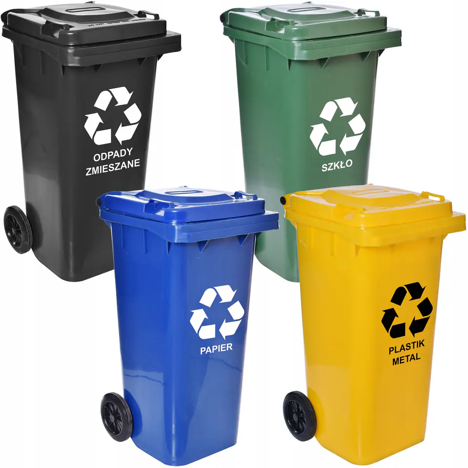 Komplet pojemników na odpadyPojemność: 4x120 litrów | Kolory: żółty, niebieski, zielony, czarny Najtrwalsze pojemniki na odpady o pojemności 120 litrów. Wykonane z mocnego tworzywa HDPE odpornego na promienie UV oraz szkodliwe warunki atmosferyczne. Dzięki dużym, gumowym kółkom z łatwością przemieścisz pojemnik nawet z ciężką zawartością.Dzięki szczelnej klapie nieprzyjemne zapachy nie wydostają się na zewnątrz..Pojemniki dostarczane przez firmę Mirosław Gockowiak spełniają wymogi norm europejskich w zakresie pojemników przeznaczonych do gospodarki odpadami (EN 840-1).Oznaczenia i napisy na pojemnikach nie są naklejkami. Pojemniki malowane są fabrycznie metodą sitodruku. Cechy produktuwykonany z HDPE - polietylenu niskociśnieniowego wysokiej gęstości co zapewnia wysoką jakość pojemników.odporność na promieniowanie UV.pojemnik wyposażony w gumowe cichobieżne koła osadzone na stalowej osi.odporność na uszkodzenia mechaniczneodporność na niskie temperaturyłatwość opróżnianiaodporność na chemikaliaoptymalizacja transportu i magazynowania - możliwość sztaplowaniazgodne z normą EN 840miejsce na identyfikator RFIDuchwyt umożliwiający transport pojemnikawysoka jakość sprawdzona przez wiele firm wywozowych w Polsceprzystosowane do rozładunku mechanicznego - zarówno konstrukcyjnie jak i wytrzymałościowołatwość w utrzymaniu higieny pojemnikawzmocniona listwa grzebieniowapojemność 120 litrówmasa własna: 7,5 kgmaksymalna masa wsadu: 48 kgmaksymalna masa łączna: 60 kgwyjątkowa mocna konstrukcja gwarantująca stabilność i trwałośćMocne cichobieżne gumowe koła osadzone na stalowej osi gwarantują szybki i cichy wywóz śmieci.Wymiary produktuSzerokość: 47 cmGłębokość: 55 cmWysokość: 95 cm W zestawie1x pojemnik - 120l - zielony1x pojemnik - 120l - niebieski1x pojemnik - 120l - żółty1x pojemnik - 120l - czarny Uwaga! Zaślepki łączące klapę z koszem znajdują się pod uchwytem kosza.Pamiętaj o segregacji odpadów!Metale i tworzywa sztuczneKup żółty pojemnikczyste foliowe torebkikartoniki po mleku i napojachplastikowe nakrętkiopakowania po jogurtachplastikowe butelki po napojach, środkach czystości, kosmetykachczyste opakowania metalowepuszki po napojach Papieropakowania z papieru i tekturymakulatura, ulotkikartonyzeszytypapier biurowygazety SzkłoKup zielony pojemnikpuste szklane butelki po napojach i żywności, bez nakrętek i reklamówekpuste szklane słoikipuste szklane butelki po kosmetykach Odpady zmieszaneKup czarny pojemnikzwierzęce odpady kuchenne: resztki mięsa, kości, skóryskorupki od jajekpieluszki jednorazowezanieczyszczony papierceramika i tekstyliaodchody zwierzęcepopiół (zimny)zwykłe żarówki żarnikowe Informacje dodatkowePrzedstawione kolory należy traktować poglądowo - mogą odbiegać od rzeczywistych ze względu na różne ustawienia monitorów oraz proces obróbki zdjęć. Rzeczywiste wymiary mogą się różnić od podanych wyżej. Tolerancja błędów może wynosić +/- 5%. Marka:GockowiakKod EAN produktu:5902340318591Kolor:żółty | niebieski | zielony | czarnyWysokość: 95 cmSzerokość:47 cmGłębokość:55 cmPrzeznaczenie:dom | ogród | działka