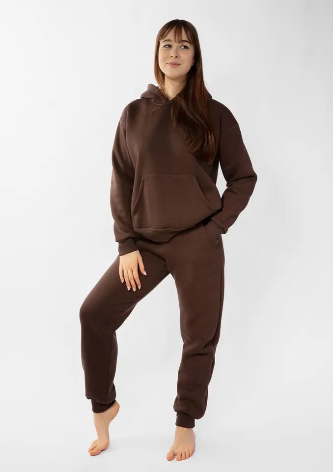 Bluza z kapturem nie tylko dodaje charakteru, ale również chroni przed deszczem czy wiatrem. Spodnie ze ściągaczem to doskonałe uzupełnienie kompletnego zestawu. Wygodne, dopasowane i elastyczne, zapewniają pełną swobodę ruchów i komfort noszenia na co dzień. Elastyczne ściągacze na dole nogawek nie tylko dodają charakteru, ale także zapewniają idealne dopasowanie do każdej sylwetki oraz ułatwiają utrzymanie ciepła w chłodniejsze dni. Idealny komplet na spędzanie czasu w domu Niezrównany komfort i przytulność kompletu Randi sprawiają, że jest on idealnym wyborem nie tylko na codzienne wyjścia, ale także na leniwe dni spędzone w domowym zaciszu.