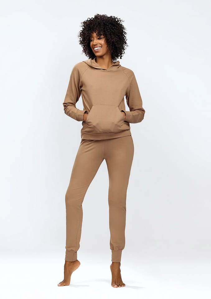 Komplet dresowy damski Seattle to nie tylko doskonały sposób na zachowanie wygody i stylu, ale także symbol wszechstronności. Bluza na długi rękaw z kapturem zapewni Ci ciepło i wygodę w chłodniejsze dni, a miły w dotyku materiał sprawi, że będziesz chciała nosić ją przez cały czas. Duża kieszeń umożliwi przechowywanie drobnych przedmiotów, a brak zamka sprawi, że bluza będzie szybka i łatwa do założenia.