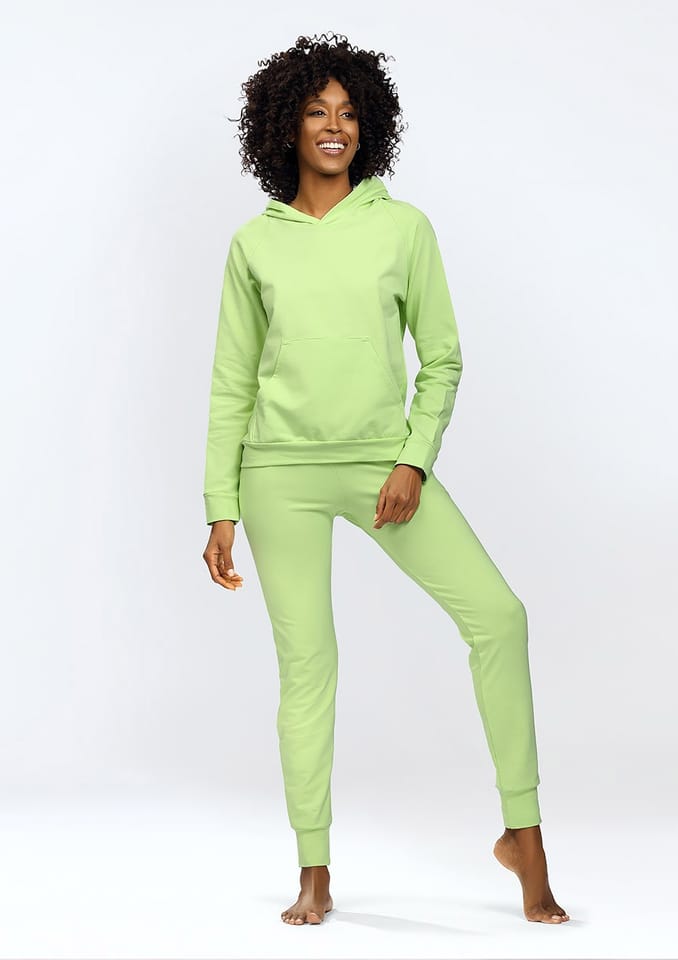 Komplet dresowy damski Seattle to nie tylko doskonały sposób na zachowanie wygody i stylu, ale także symbol wszechstronności. Bluza na długi rękaw z kapturem zapewni Ci ciepło i wygodę w chłodniejsze dni, a miły w dotyku materiał sprawi, że będziesz chciała nosić ją przez cały czas. Duża kieszeń umożliwi przechowywanie drobnych przedmiotów, a brak zamka sprawi, że bluza będzie szybka i łatwa do założenia.