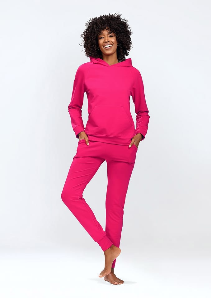 Komplet dresowy damski Seattle to nie tylko doskonały sposób na zachowanie wygody i stylu, ale także symbol wszechstronności. Bluza na długi rękaw z kapturem zapewni Ci ciepło i wygodę w chłodniejsze dni, a miły w dotyku materiał sprawi, że będziesz chciała nosić ją przez cały czas. Duża kieszeń umożliwi przechowywanie drobnych przedmiotów, a brak zamka sprawi, że bluza będzie szybka i łatwa do założenia.