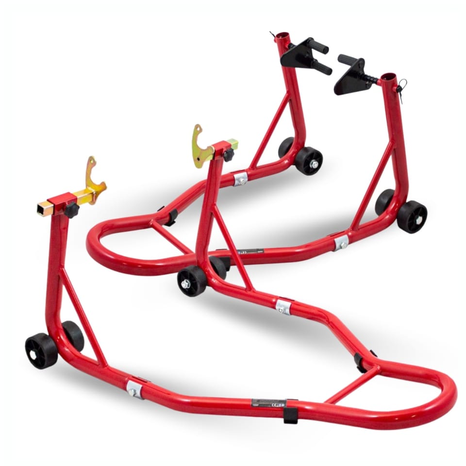 STOJAKI UCHWYTY DO MOTOCYKLA CZERWONE ZESTAW PRZÓD TYŁ