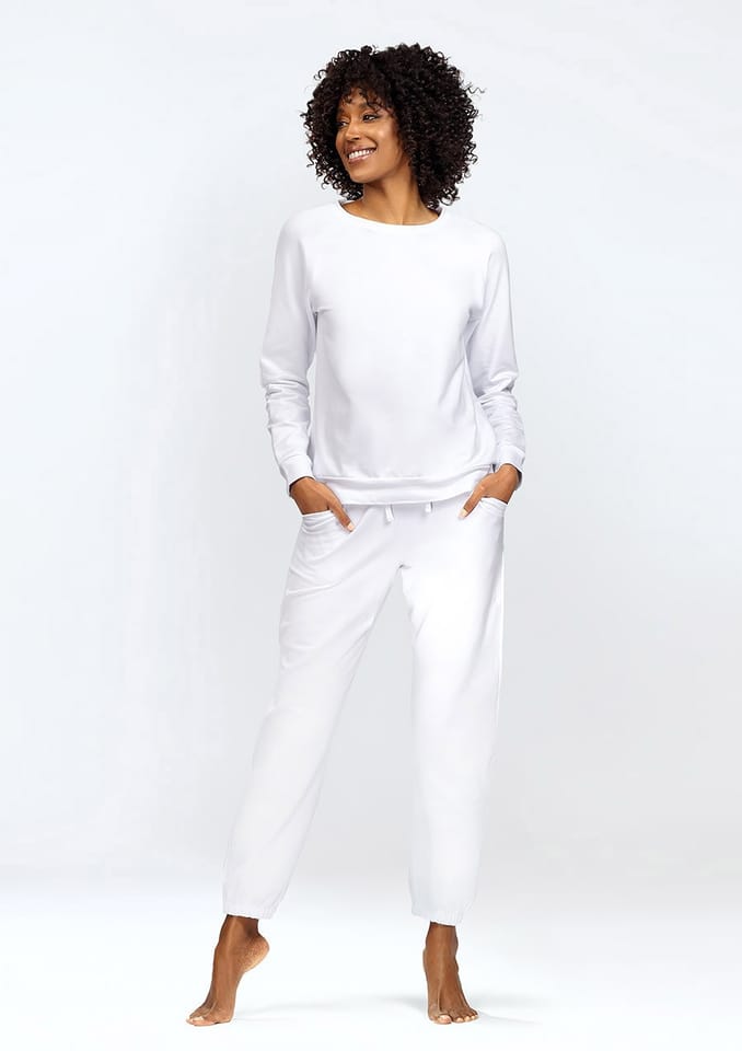 Do zestawu dołączone są spodnie dresowe, które zachwycą Cię zarówno swoją wygodą, jak i praktycznymi detalami. Wykonane z gładkiego materiału, spodnie posiadają dwie kieszenie na przodzie, które pozwalają na wygodne przechowywanie drobnych przedmiotów. Gumka w pasie ze sznurkiem gwarantuje idealne dopasowanie, umożliwiając Ci kontrolę nad luźnością spodni.