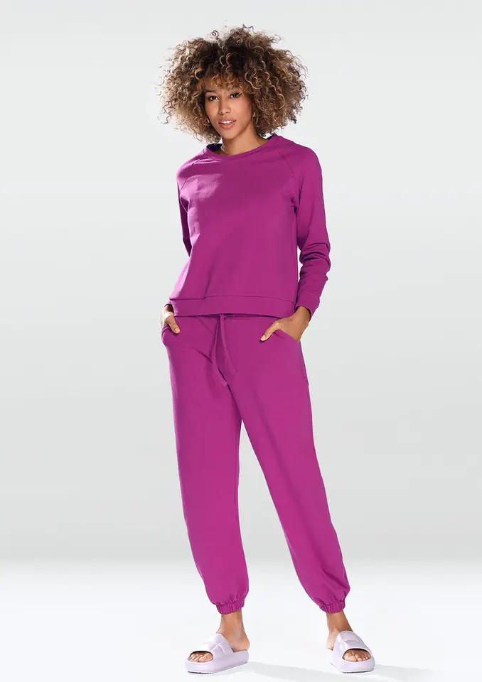 Komplet dresowy damski Wenezja to idealna propozycja dla kobiet, które cenią prostotę, wygodę i ponadczasowy styl. Klasyczna bluza wykonana z gładkiego, przyjemnego materiału prezentuje się z nieskazitelną elegancją, idealnie wpisując się zarówno w casualowe, jak i bardziej formalne okazje. Brak kieszeni, kaptura czy zamka podkreśla minimalistyczny charakter bluzy, jednocześnie zachowując jej ponadczasowy urok.