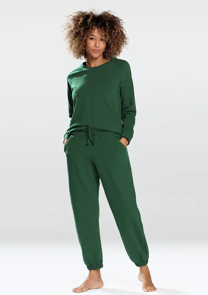 Do zestawu dołączone są spodnie dresowe, które zachwycą Cię zarówno swoją wygodą, jak i praktycznymi detalami. Wykonane z gładkiego materiału, spodnie posiadają dwie kieszenie na przodzie, które pozwalają na wygodne przechowywanie drobnych przedmiotów. Gumka w pasie ze sznurkiem gwarantuje idealne dopasowanie, umożliwiając Ci kontrolę nad luźnością spodni.