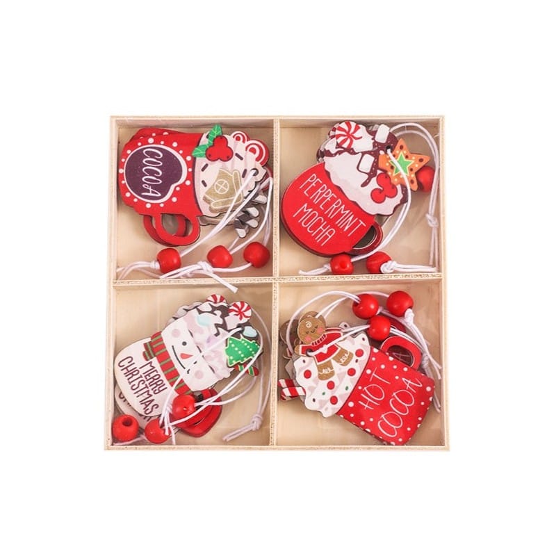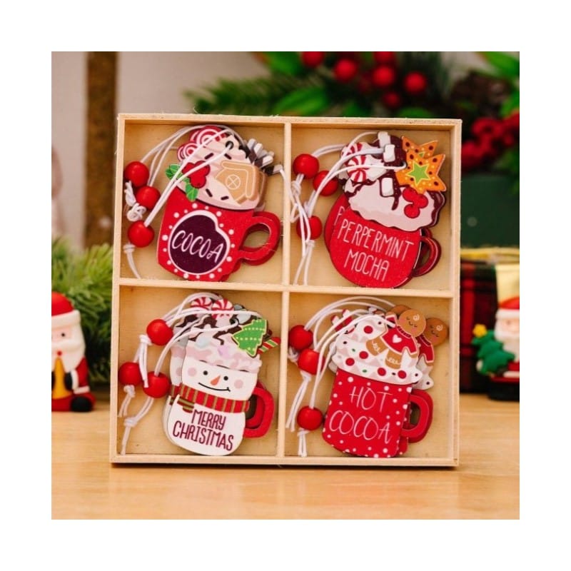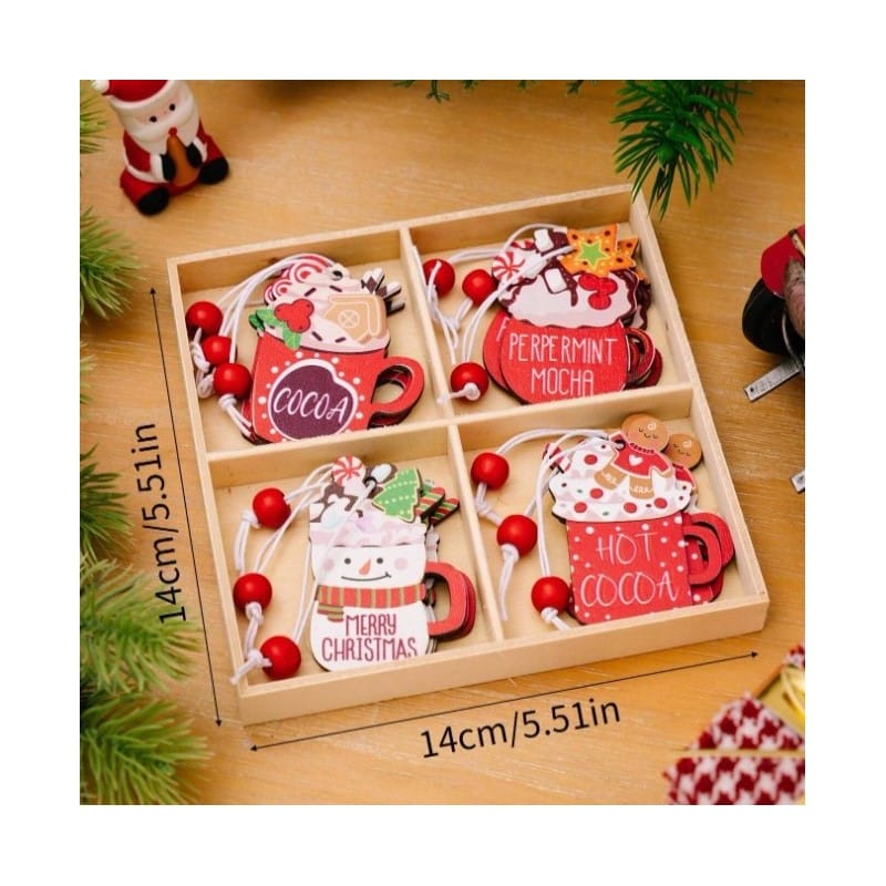 Komplet zawieszek choinkowych PIERNICZKI 12 sztukDodaj swojemu wnętrzu odrobinę zimowej magii. Pierniczki nadają się jako ozdoba świąteczna do powieszenia na oknie, choince lub jako prezent.Cudowny i praktyczny dodatek do twojego wnętrza. Tymi zawieszkami udekorujesz świąteczne drzewo jak i stroiki czy okna. Specyfikacja:Zestaw 12 sztukZapakowane w drewniane pudełko Materiał: DrewnoWymiary 1 zawieszki:6 x 4,5 cmWymiary pudełka:14 x 14 cmWaga zestawu:66g brutto Poczuj klimat świąt!