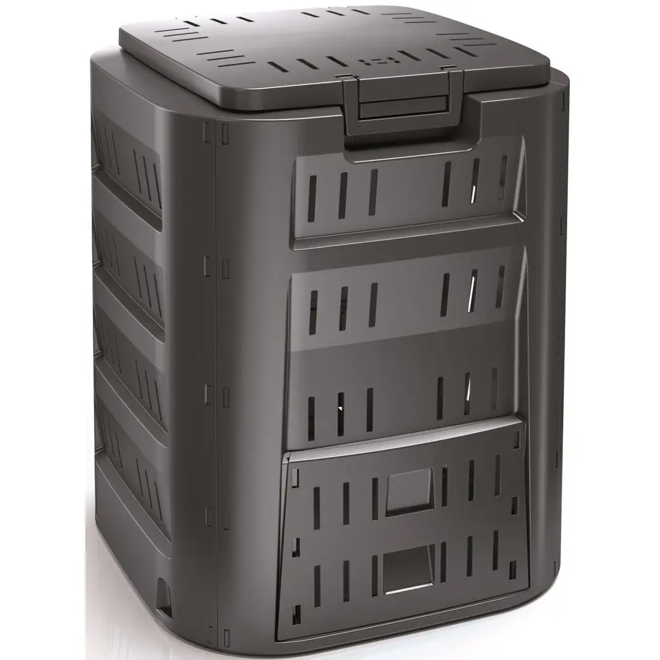 Zamknięta forma i zabezpieczenie w formie przykrywek ograniczy dostęp wszelkich zwierząt do zebranych odpadów, a otwory zapewnią dopływ niezbędnego powietrza. Dolna uchylana zasuwa, ułatwi dostęp do wyprodukowanego kompostu w każdym momencie, nawet gdy jest na dnie zbiornika, a specjalna rączka blokująca klapę, umożliwi wygodne wrzucenie odpadów do środka! Jest lekki i wytrzymały na zmienne warunki atmosferyczne, będzie Ci służył przez wiele lat.