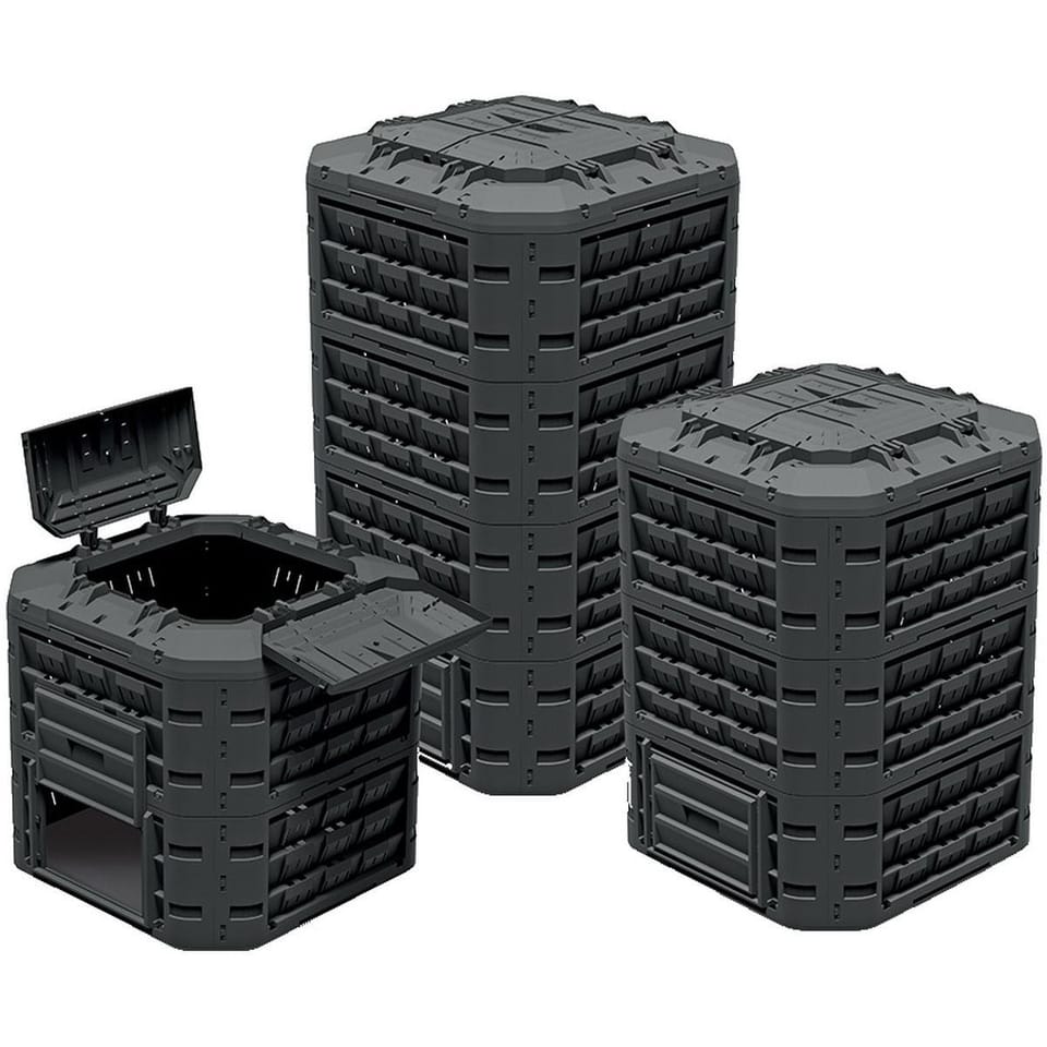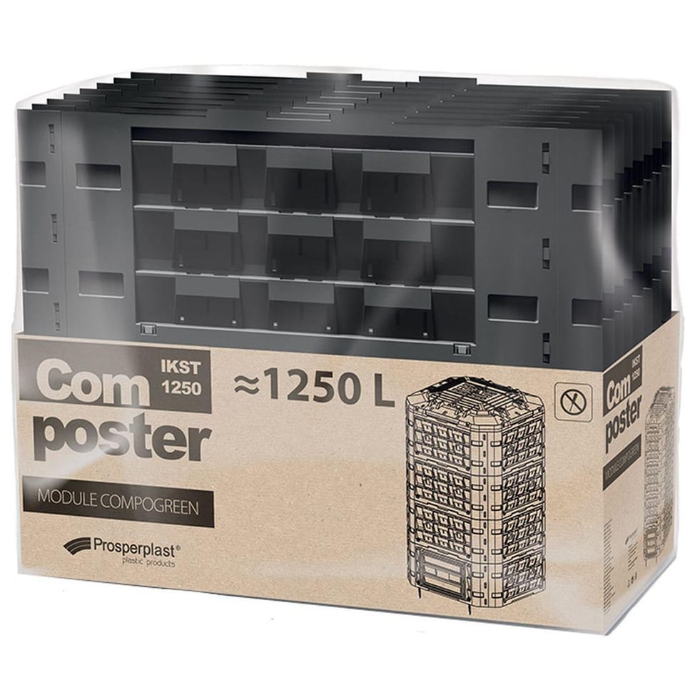 - pojemność 1250l, idealny dla ogrodników, którzy potrzebują dużej przestrzeni do kompostowaniamodułowa budowa zapewni szybki montaż bez narzędzi i możliwość personalizacji rozmiarułatwy i wygodny w obsłudze dzięki prostej konstrukcjiodporny na uszkodzenia i niekorzystne warunki atmosferycznerozwiązuje problem ze składowaniem liści i skoszonej trawy w ogrodzieprzetworzone na nawóz odpady posłużą do ekologicznego nawożenia glebypokrywa ochroni kompostownik przed dostaniem się zwierząt do odpadówuchylne klapy zapewniają stały dostęp do gotowego kompostu