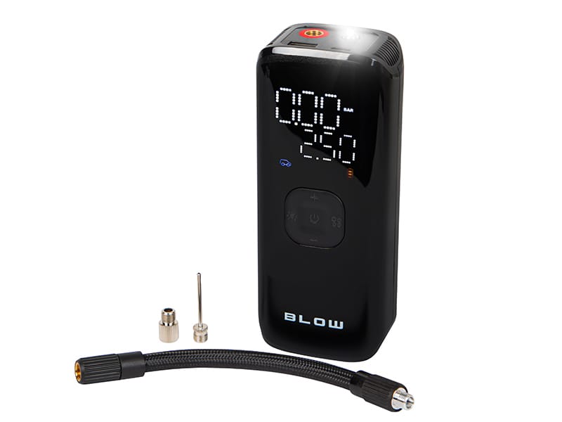 Mini przenośny kompresor samochodowy to najnowszy model pompki elektrycznej marki Blow. To urządzenie jest niezwykle funkcjonalne, pomocne i łatwe w obsłudze, dlatego powinno znaleźć się w każdym samochodzie, plecaku podczas wycieczek motoryzacyjnych czy nawet w gospodarstwie domowym. Jego wszechstronność z pewnością zrobi wrażenie na znajomych i rodzinie.Najważniejsze cechy:
