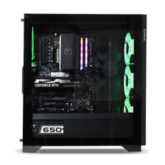 Wnętrze obudowy wyposażone w maksymalną ilość wentylatorów RGB, dbających o jak najlepszy przepływ powietrza i odprowadzanie ciepła z podzespołów. Rozszerzone chłodzenie procesora, gwarantujące znacznie wyższe możliwości niż standardowy system chłodzący. Zwiększ taktowanie procesora w łatwy sposób, przekraczając granicemożliwości większości komputerów gamingowych.