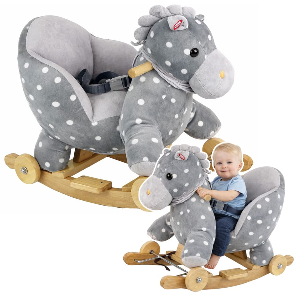 Zapraszamy do poznania niezwykłego świata przygód z małym konikiem na biegunach, który przyniesie mnóstwo radości Twojemu dziecku! Ten uroczy szary konik z białymi kropkami to nie tylko zabawka, to przyjaciel, który gra wesołą muzykę dzięki 3 bateriom R6 AA (brak w zestawie). Wyjątkowo miękki w dotyku i bez ostrych krawędzi, gwarantuje pełne bezpieczeństwo podczas huśtania i zabawy.