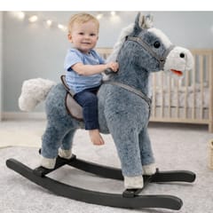 KOŃ NA BIEGUNACH 74 CM DŹWIĘKI SZARY