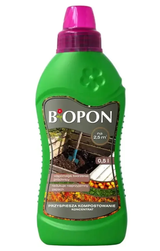 Preparat pomaga stworzyć jednolitą masę kompostową o wysokiej żyzności, hamuje powstawanie w niej szkodliwych związków i redukuje nieprzyjemny zapach. Płynna postać preparatu zapewnia równomierną aplikację, szybkie działanie i odpowiednie nawilżenie kompostowanych odpadów. Produkt zawiera azot oraz naturalne substancje odżywcze w proporcjach gwarantujących szybki i intensywny rozwój mikroorganizmów glebowych.