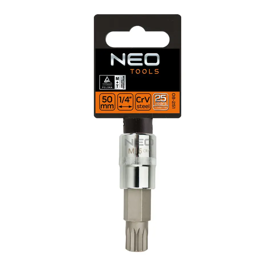 Końcówka Spline na nasadce 1/2", M14 x 55 mm, nasadka ze stali CrV, końcówka ze stali S2
