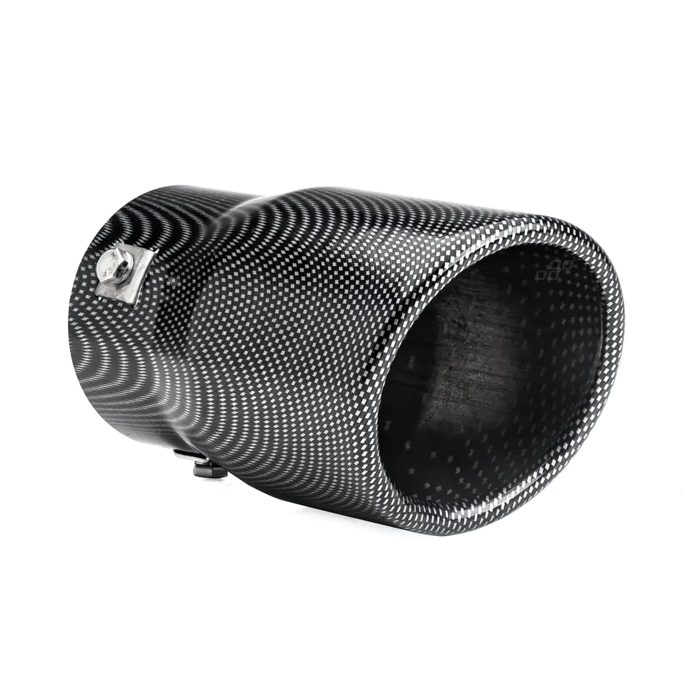 Końcówka tłumika ze stali nierdzewnej z malowaniem w kolorze karbonu. Końcówka uniwersalna nadająca elegancki sportowy wygląd. Poprzez szeroki zakres regulacji uchwytów pasuje do większości samochodów (dwa sposoby montażu: do przykręcenia za pomocą śrub montażowych lub do przyspawania). Średnica montażowa: 48 - 65 mm